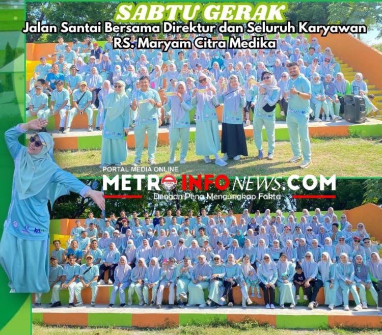METROINFONEWS.COM | TAKALAR – Sebanyak 134 karyawan Rumah Sakit Maryam Citra Medika (RSMCM) ambil bagian dalam kegiatan rutin bulanan bertajuk “Sabtu Gerak”, yang digelar pada Sabtu (27/9/2025). Agenda tersebut diawali dari depan Tribun Lapangan H. Makkatang Dg. Sibali, Kabupaten Takalar, dengan rute jalan santai sejauh 3–4 kilometer.