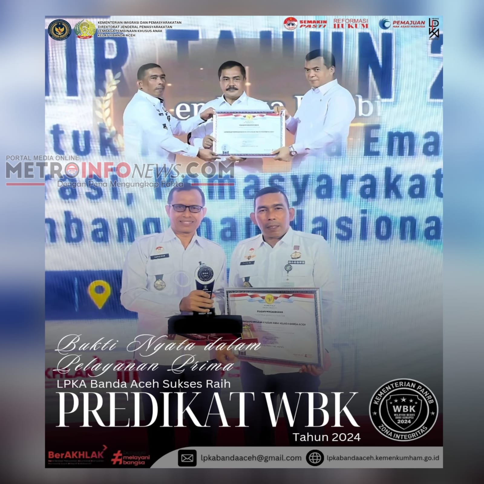 Sebagaimana diketahui, 5 UPT di lingkungan Kementerian Hukum Aceh juga mendapat predikat WBK yakni Lembaga Pembinaan Khusus Anak Kelas II Banda Aceh, Rumah Tahanan Negara Kelas IIB Bener Meriah, Rumah Tahanan Negara Kelas IIB Takengon, Kantor Imigrasi Kelas I TPI Banda Aceh dan Kantor Imigrasi Kelas II Non TPI Meulaboh.(FAHRUL)
