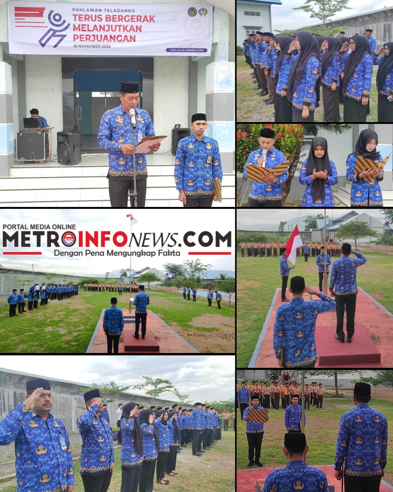 METROINFONEWS.COM | BANDA ACEH — Dalam rangka memperingati Hari Pahlawan Nasional Tahun 2025, Lembaga Pembinaan Khusus Anak (LPKA) Kelas II Banda Aceh melaksanakan upacara bendera yang berlangsung khidmat di halaman Gedung Serbaguna LPKA Banda Aceh pada Senin, 10 November 2025.