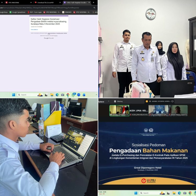 METROINFONEWS.COM | BANDA ACEH – Lembaga Pembinaan Khusus Anak (LPKA) Kelas II Banda Aceh Yusnaidi, S.H., M.Si., mengikuti kegiatan Zoom Meeting Sosialisasi Pedoman Pengadaan Bahan Makanan (BAMA) melalui E-Purchasing dan pencatatan E-Kontrak pada aplikasi SPSE di lingkungan Kementerian Hukum dan Hak Asasi Manusia Republik Indonesia (Kemenkumham RI) Tahun 2025.