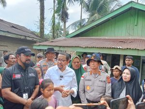 METROINFONEWS.COM | ACEH TIMUR – Kapolda Aceh Irjen. Pol. Drs. Marzuki Ali Basyah, MM. mendampingi Staf Kepresidenan Republik Indonesia Muhammad Qodari, saat mengunjungi warga terdampak banjir di Gampong Bunin, Kecamatan Serbajadi/Lokop, Kabupaten Aceh Timur, Provinsi Aceh pada, Rabu (14/01/2026), Kunjungan tersebut bertujuan untuk melihat langsung kondisi masyarakat serta memastikan penanganan pasca bencana berjalan dengan baik.