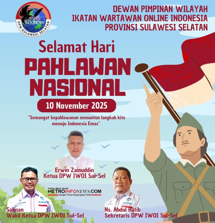 METROINFONEWS.COM |Makassar, 10 November 2025 –Peringatan Hari Pahlawan yang jatuh setiap tanggal 10 November bukan sekadar seremonial untuk mengenang jasa para pejuang bangsa. Lebih dari itu, momentum ini menjadi ajakan moral bagi seluruh elemen masyarakat, termasuk insan pers, untuk meneladani nilai-nilai kepahlawanan dalam kehidupan berbangsa dan bernegara.