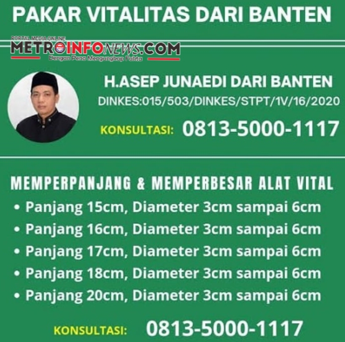 METROINFONEWS.COM | SURABAYA – Selamat datang Bagi Anda yang sedang mencari solusi terpercaya untuk masalah vitalitas, kini hadir layanan pengobatan tradisional yang telah terbukti ampuh, cepat, dan aman. Klinik Pengobatan Alat Vital H. Asep Junaedi, yang telah terdaftar resmi di pemerintah dengan Surat Terdaftar Penyehat Tradisional (STPT) Nomor 015/503/DINKES/STPT/IV/16/2018, siap membantu menyelesaikan berbagai keluhan alat vital pria dan wanita.
