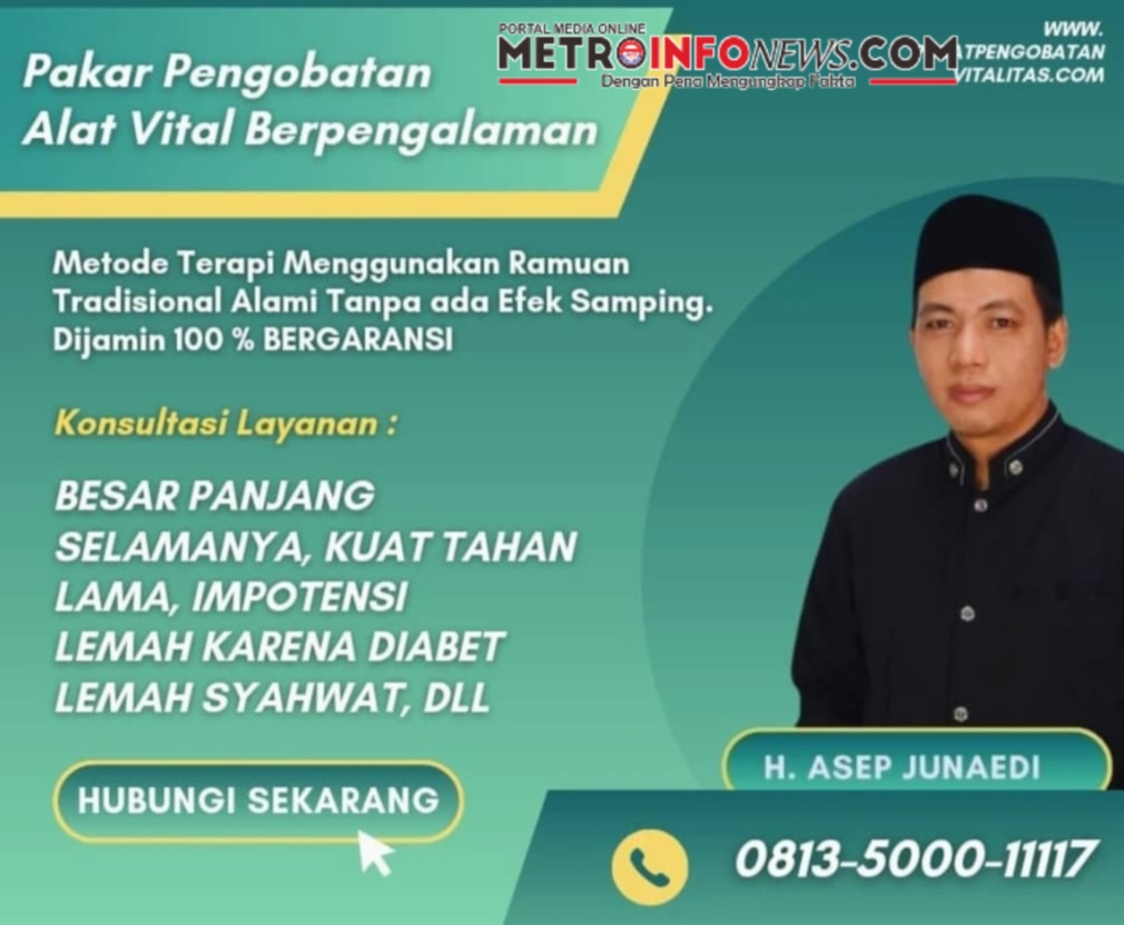 METROINFONEWS.COM | SURABAYA – Selamat datang Bagi Anda yang sedang mencari solusi terpercaya untuk masalah vitalitas, kini hadir layanan pengobatan tradisional yang telah terbukti ampuh, cepat, dan aman. Klinik Pengobatan Alat Vital H. Asep Junaedi, yang telah terdaftar resmi di pemerintah dengan Surat Terdaftar Penyehat Tradisional (STPT) Nomor 015/503/DINKES/STPT/IV/16/2018, siap membantu menyelesaikan berbagai keluhan alat vital pria dan wanita.