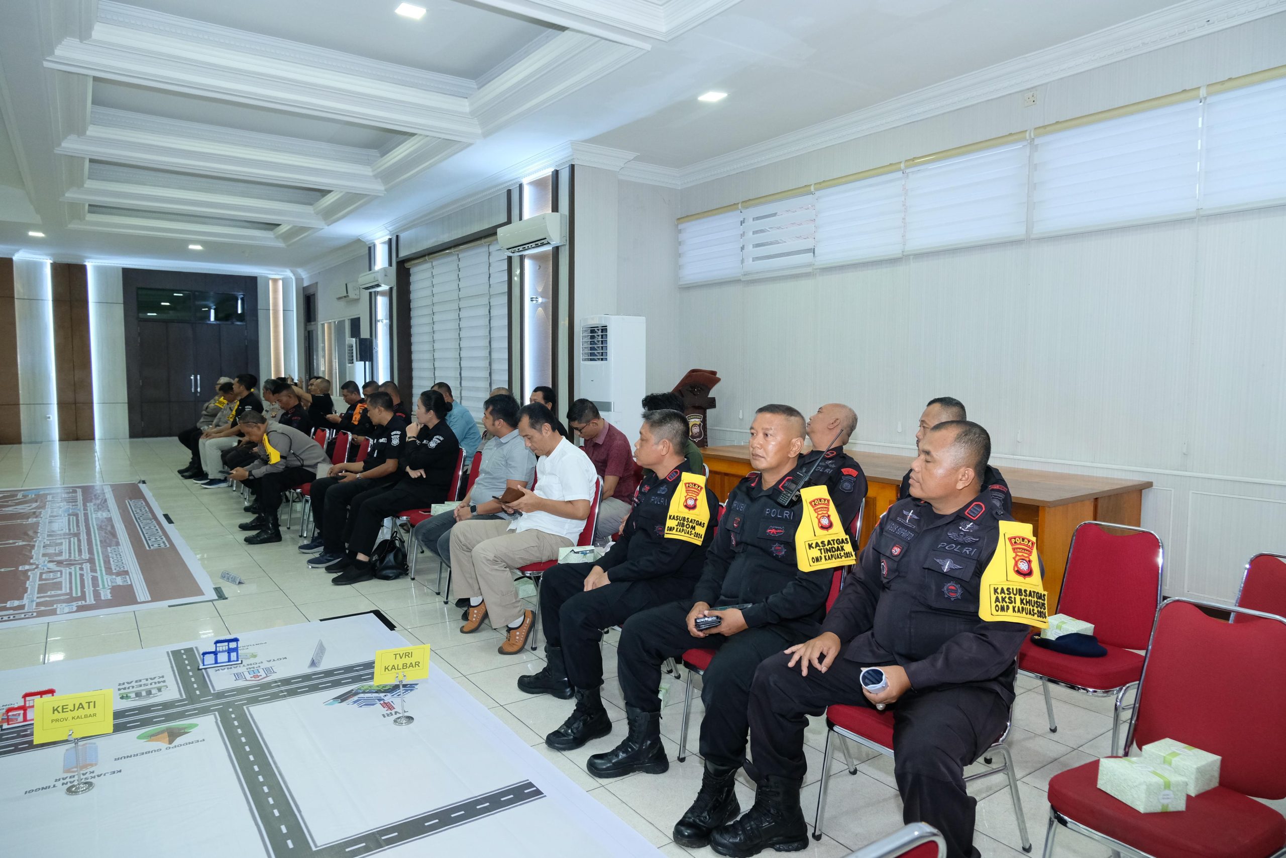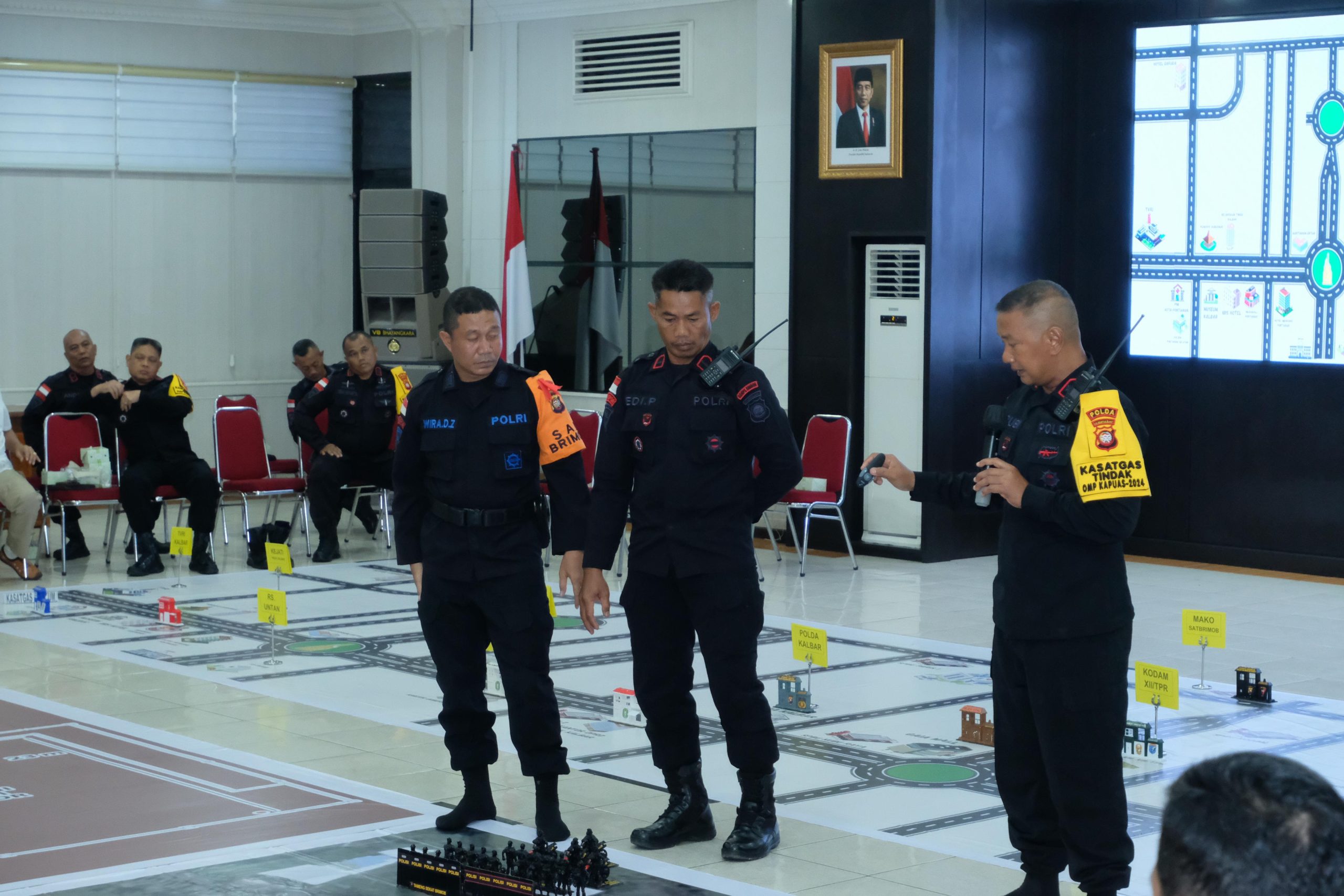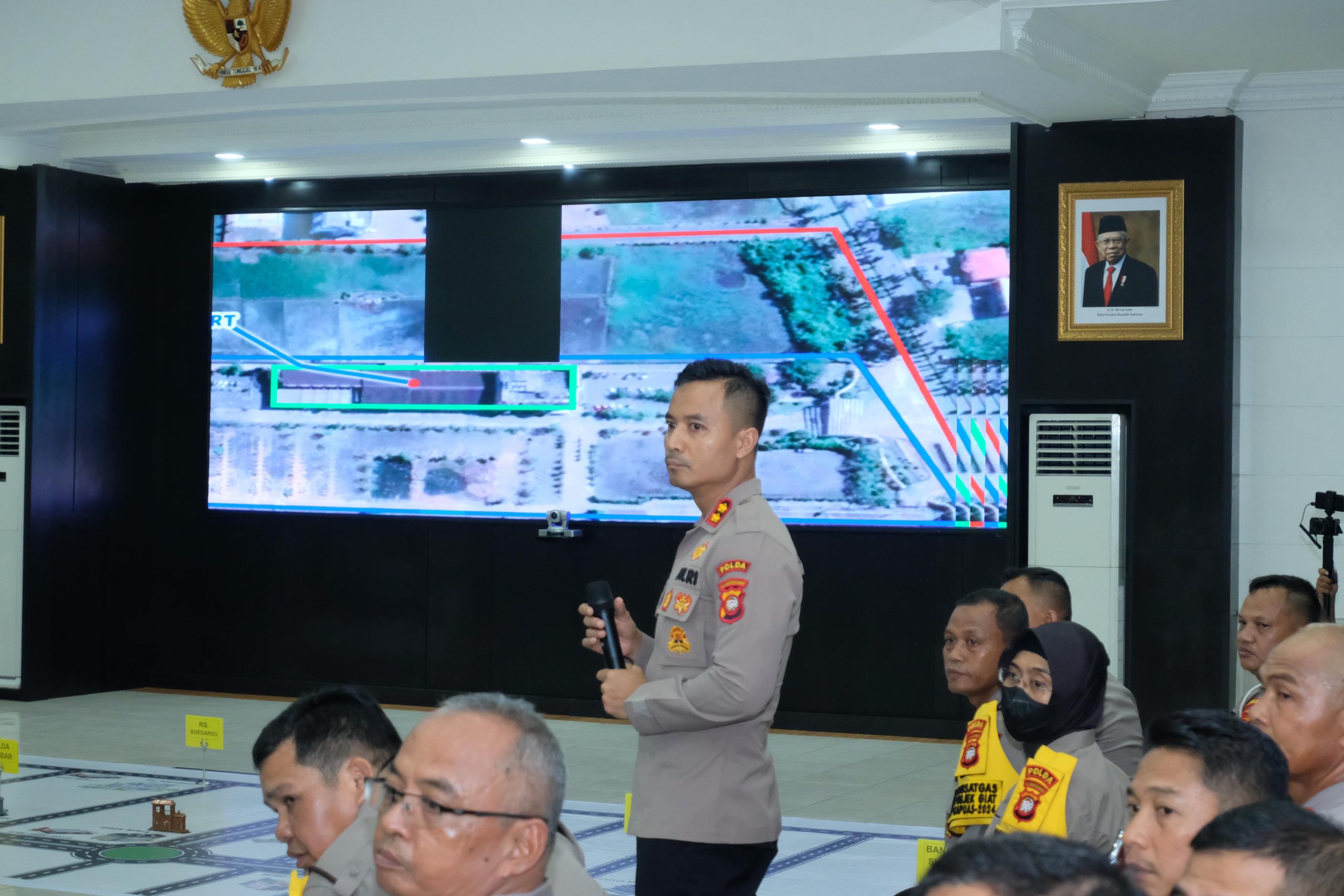 METROINFONEWS.COM | Pontianak, Polda Kalbar_ Guna mempersiapkan Pengamanan pemilihan Gubernur dan Wakil Gubernur Kalbar tahun 2024, yang mana sudah sampai pada tahapan Cabut Undi nomor urut dan deklarasi damai Pasangan Calon Gubernur dan Wakil Gubernur di wilayah Hukum Polda Kalbar, diadakanlah kegiatan Latihan olah Strategi melalui TFG(Tactical Floor Game) yang Bertempat di Ruang Graha Khatulistiwa Polda Kalbar. (Minggu, 22/9/2024)