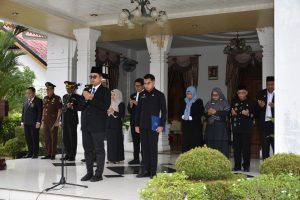 Bertindak sebagai Inspektur Upacara Walikota Langsa Jeffry Sentana S Putra, SE, dan Komandan Upacara Pasiter Kodim 0104/Aceh Timur Lettu Kavaleri Muhammad Irwan, di Halaman Pendopo Walikota Langsa, Rabu 1 Oktober 2025.